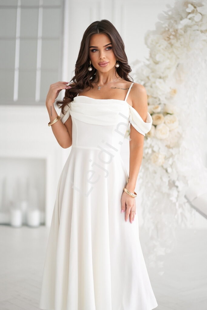 Biała midi suknia wieczorowa z rozporkiem midi hb325