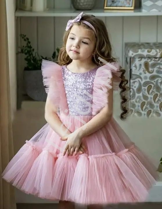 Pustynno różowa sukienka dziecięca z cekinami 086