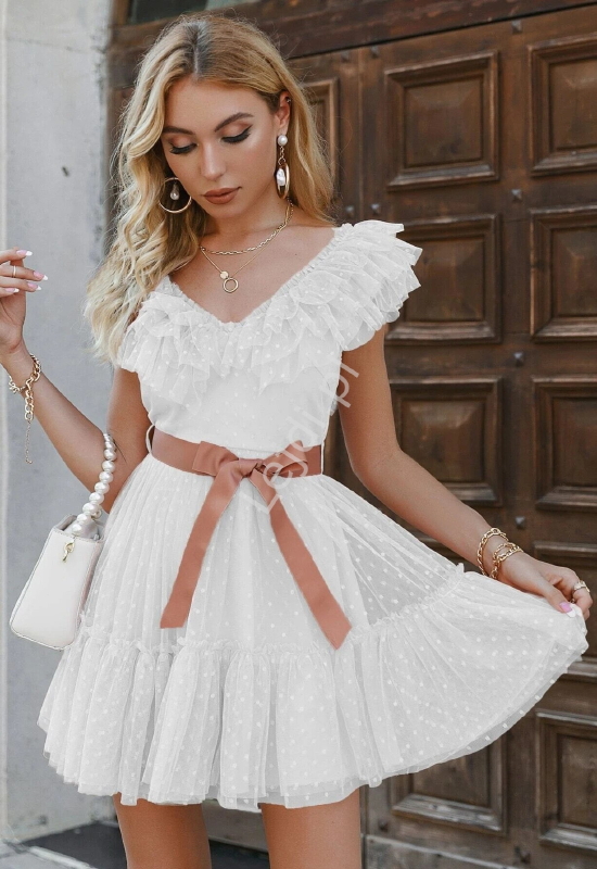 Sukienka z falbanami biała z rozcięciem na nodze, ślub cywilny, Panna Młoda