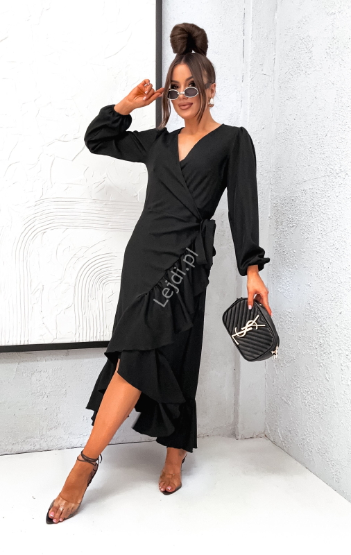 Długa sukienka z falbanami na wesele, sukienka na komunie chrzest czarna 82181