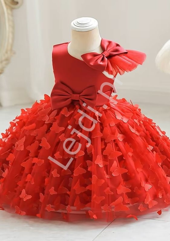 Krótka czerwona sukienka z motylkami wieczorowa dla dziewczynki m133