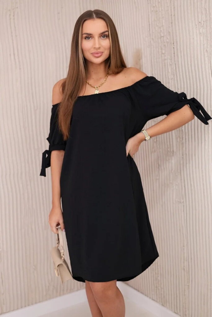 Sukienka z dłuższym tyłem i wiązaniem na rękawach czarna