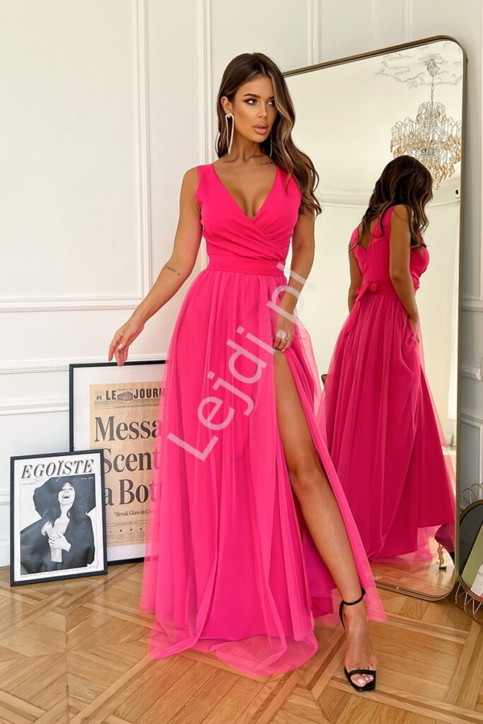 Suknia Plus Size na studniówkę, wesele, sylwestra neonowy róż HB248
