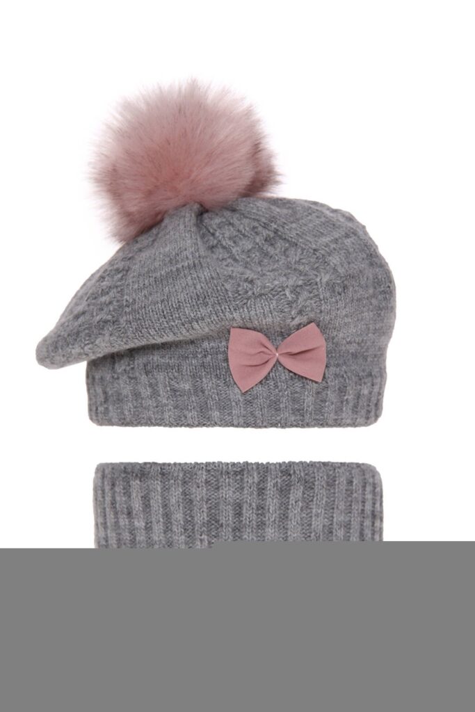 Komplet Zimowy dla Dziewczynki Czapka z Dwoma Pomponami i Komin Szara