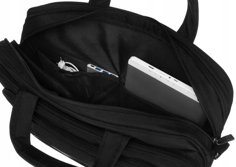 Stylowa torba na laptopa wykonana z wysokiej klasy poliestru, ozdobiona wstawkami z eko skóry. Pojemna i praktyczna, pozwoli na bezpieczny transport urządzenia przenośnego. Z powodzeniem zmieści duże ilości dokumentów w formacie A4.