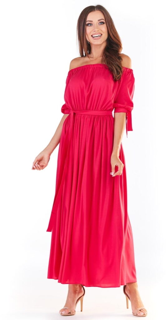 Długa Sukienka z Hiszpańskim Dekoltem – Fuksja