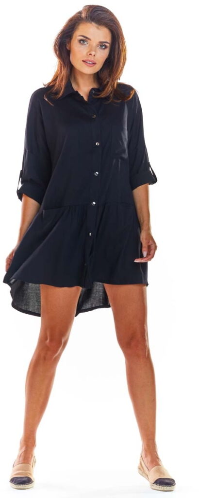 Czarna Luźna Koszulowa Sukienka z Falbanką