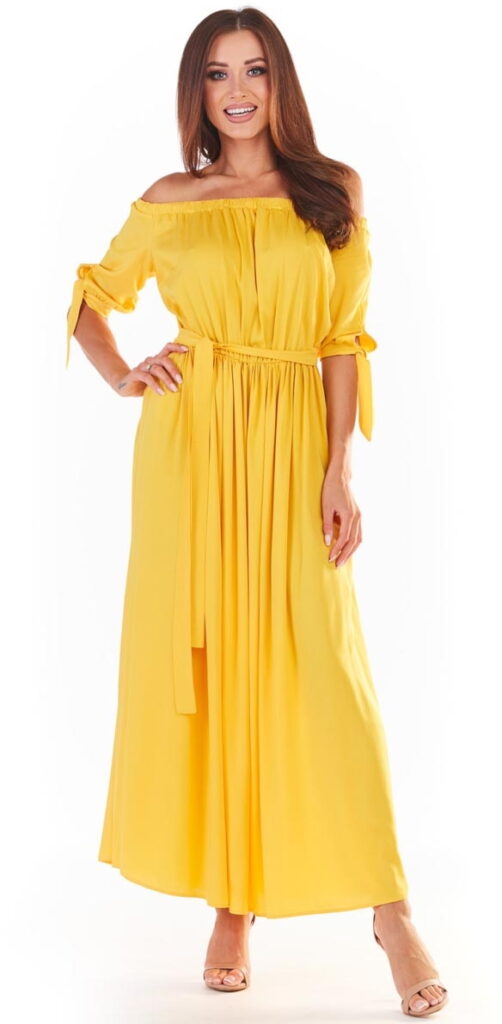 Długa Sukienka z Hiszpańskim Dekoltem – Żółta