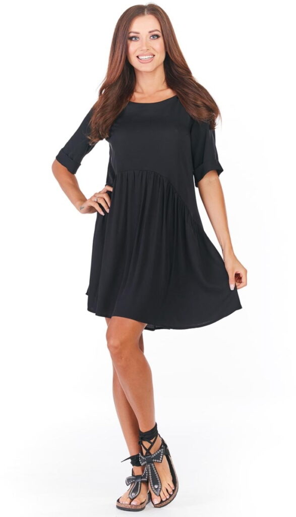 Czarna Krótka Sukienka z Marszczonym Dołem