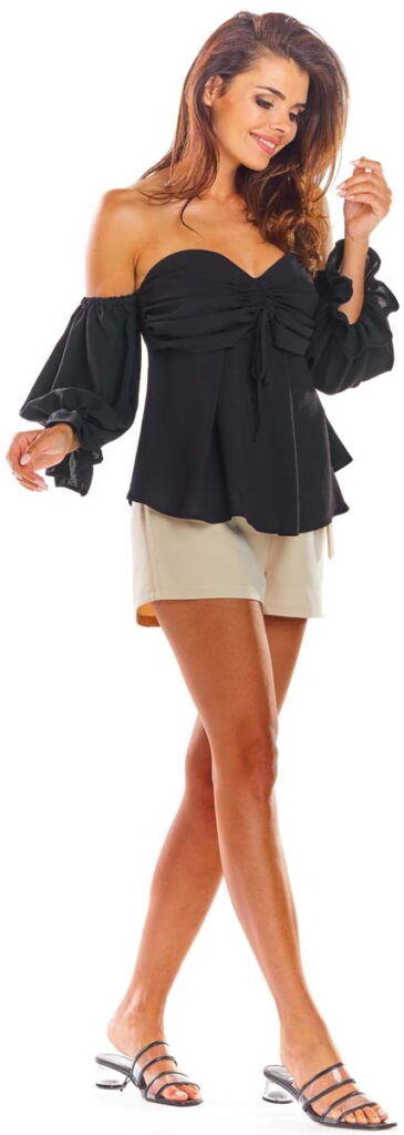 Czarna Bluzka z Hiszpańskim Dekoltem z Rękawami 3/4
