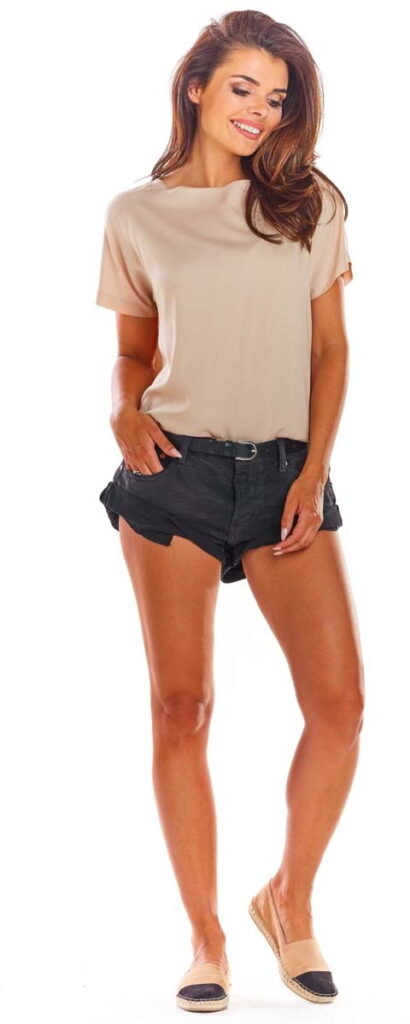 Beżowa Oversizowa Bluzka Wiązana na Plecach