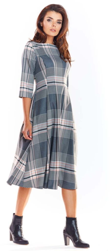 Beżowa Rozkloszowana Midi Sukienka z Krótkim Kimonowym Rękawem