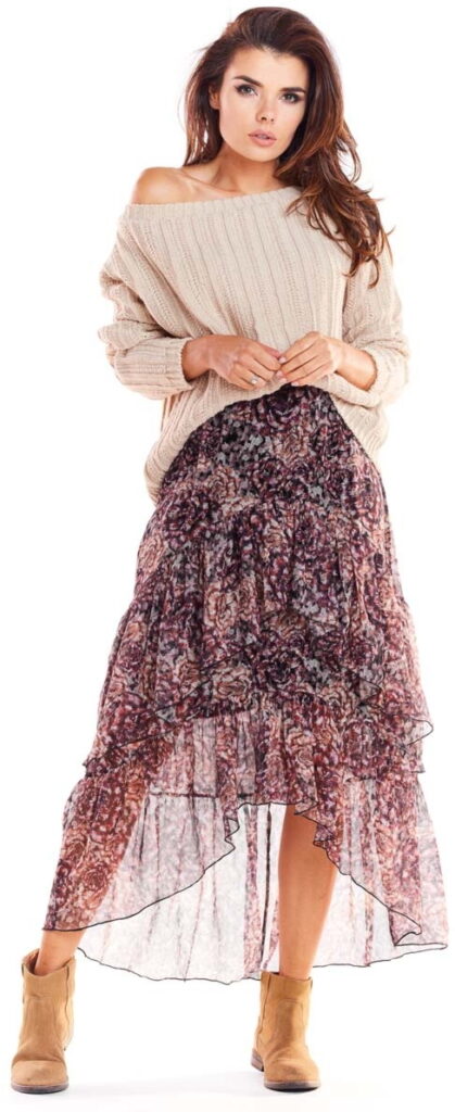 Wzorzysta Asymetryczna Maxi Spódnica z Falbankami – Wzór 2
