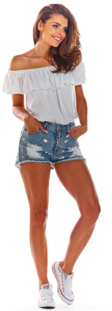 Biała Letnia Bluzka z Hiszpańskim Dekoltem