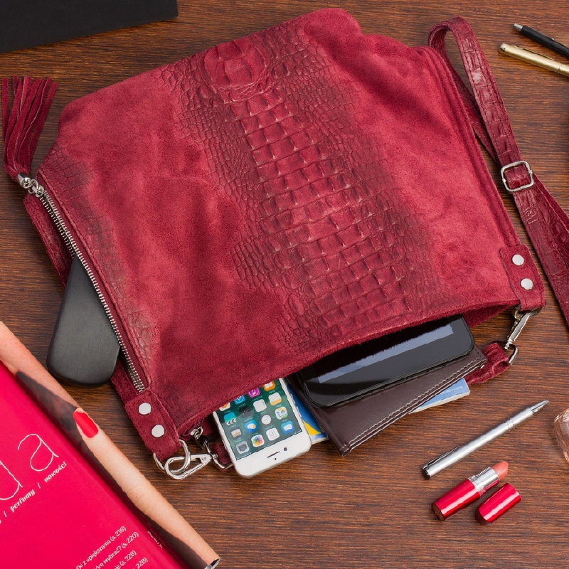 Shopperka skórzana wężowa BELTIMORE W10 bordowa