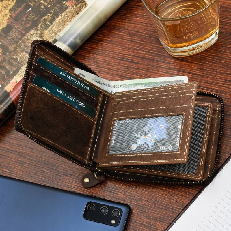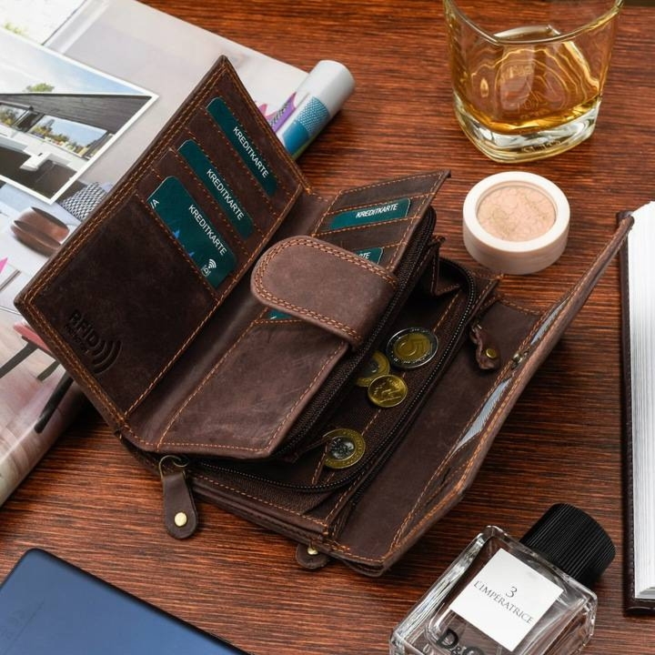 Portfel skórzany nubuk brązowy Beltimore H01