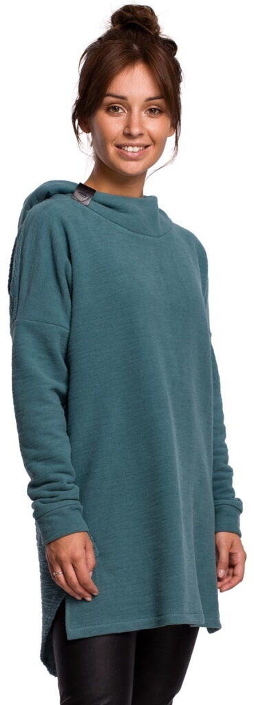 Nierozpinana Asymetryczna Bluza z Kapturem – Zielona
