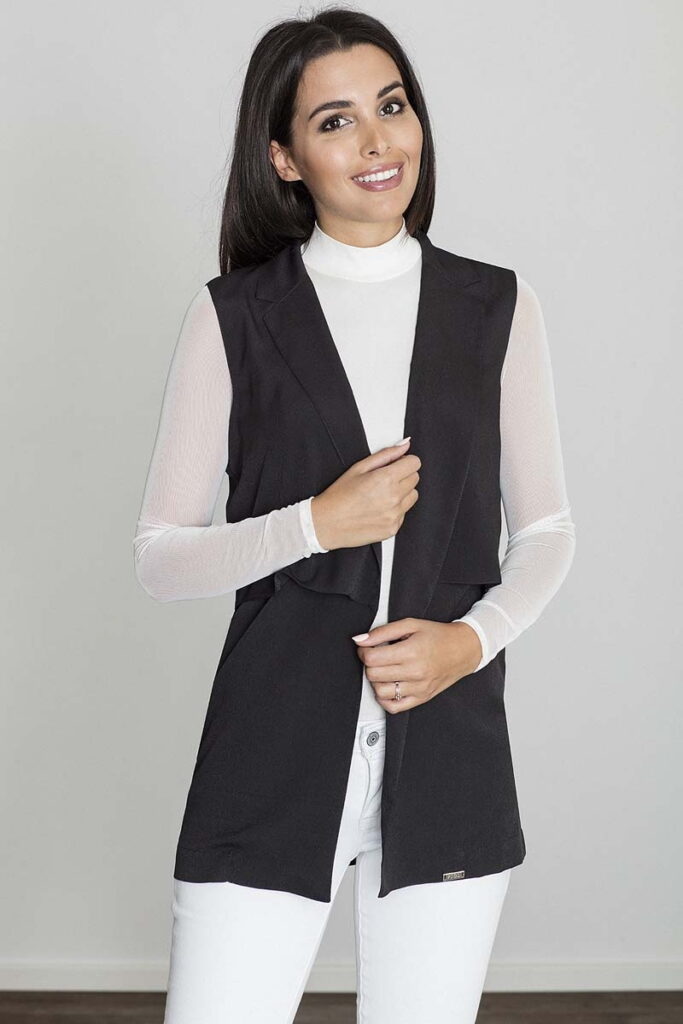 Czarna Warstwowa Kamizelka bez Zapięcia o Przedłużonym Kroju