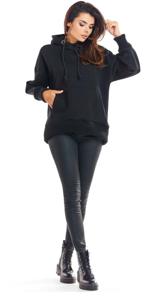 Czarna Oversizowa Bluza z Kapturem