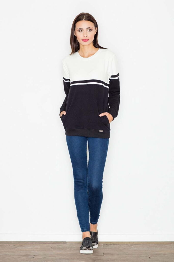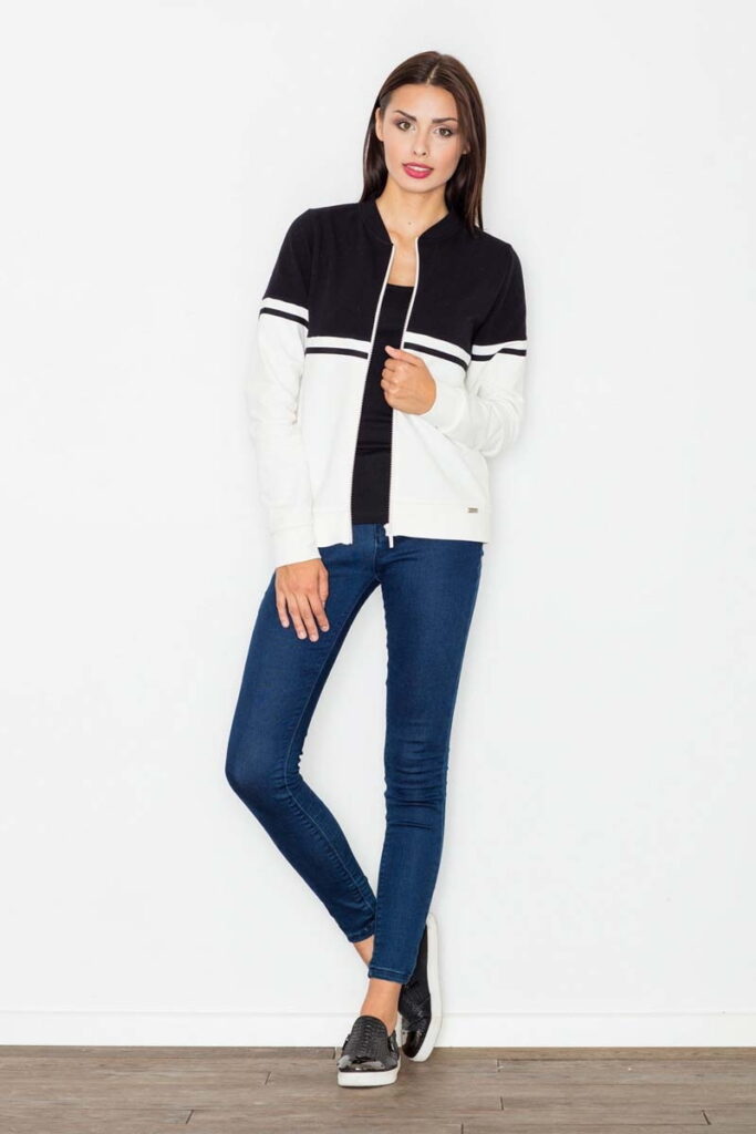 Czarna Bluza na Stójce z Kontrastowymi Pasami