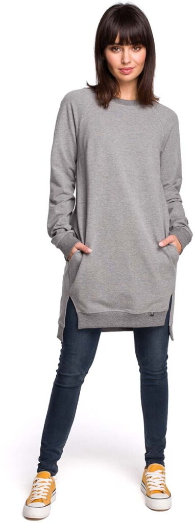 Szara Długa Nierozpinana Bluza z Rozporkami