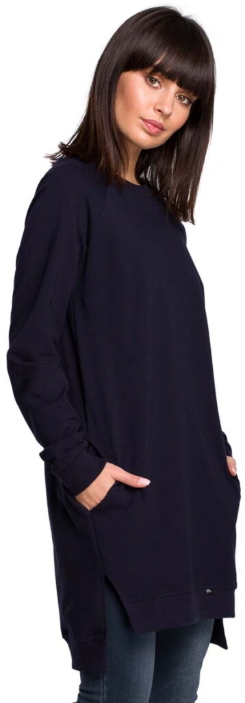 Granatowa Długa Nierozpinana Bluza z Rozporkami