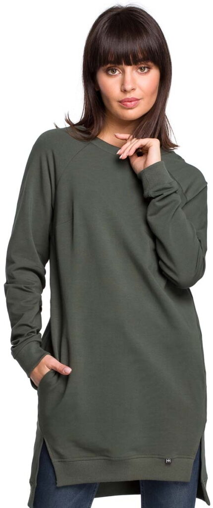 Zielona Długa Nierozpinana Bluza z Rozporkami