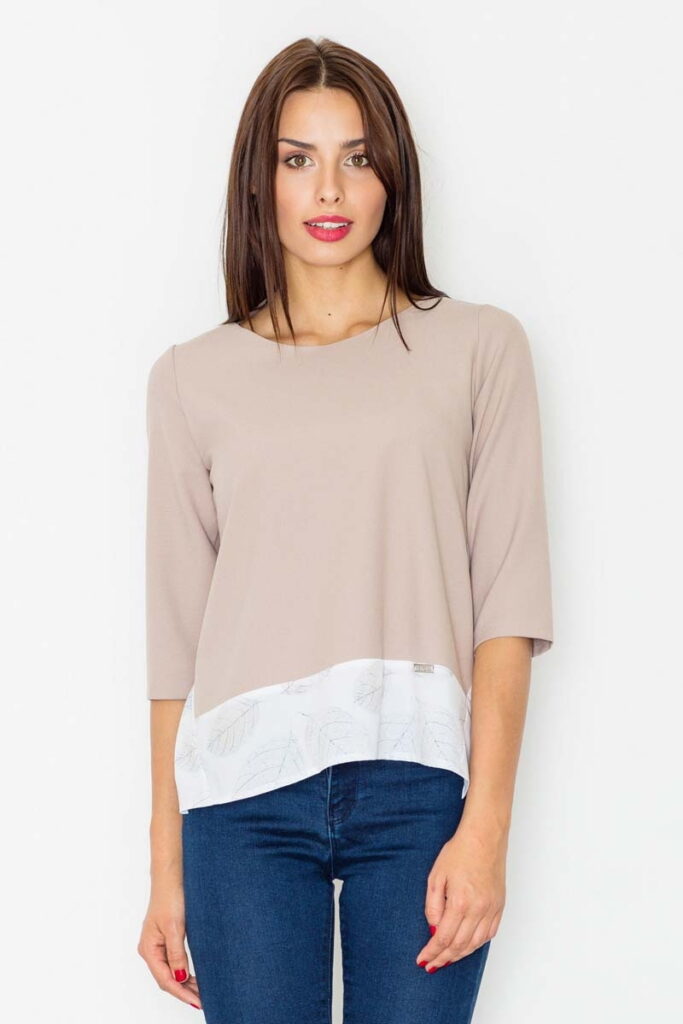 Beżowa Bluzka z Wzorzystym Dołem z Rękawem 1/2