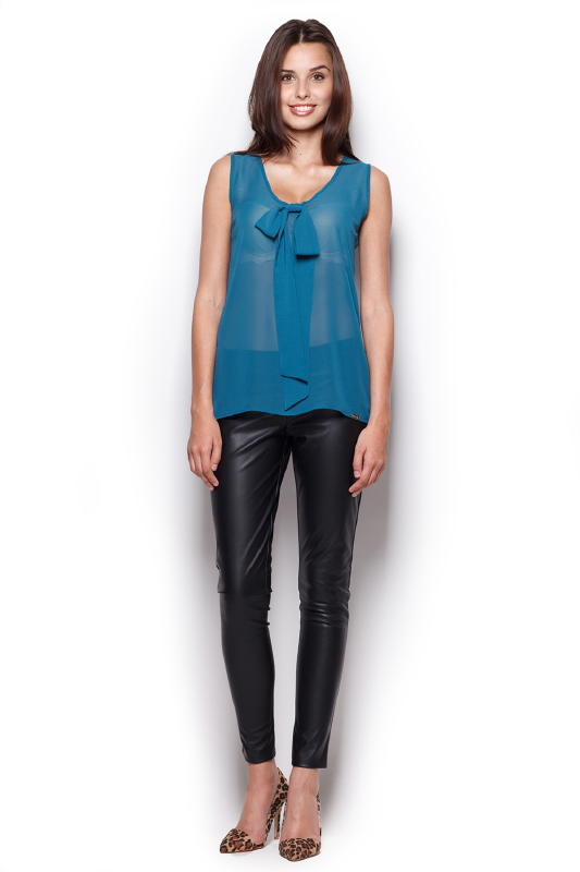 Modna Miętowa Bluzka z Dekoltem „V” Sznurowana na Plecach