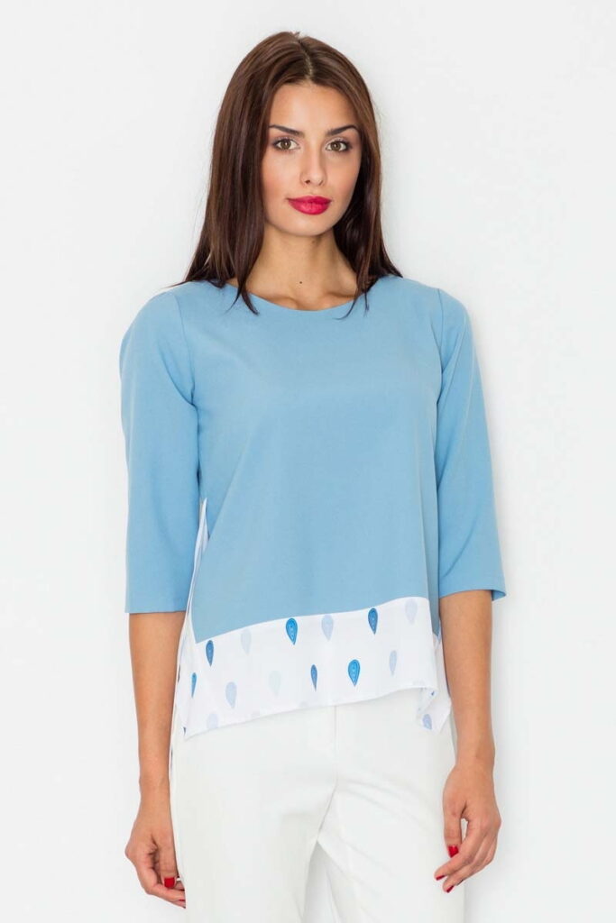 Błękitna Bluzka z Wzorzystym Dołem z Rękawem 1/2