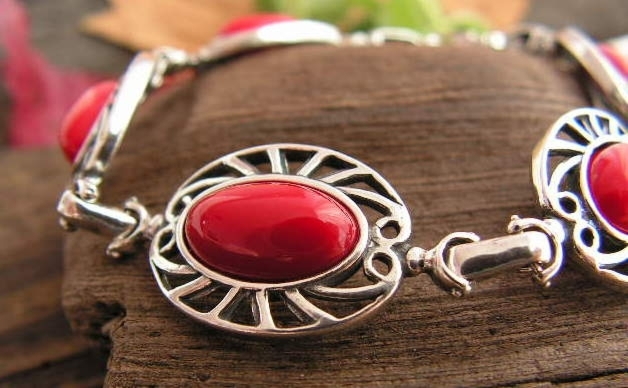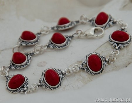 SULMONA – srebrna bransoletka z koralem