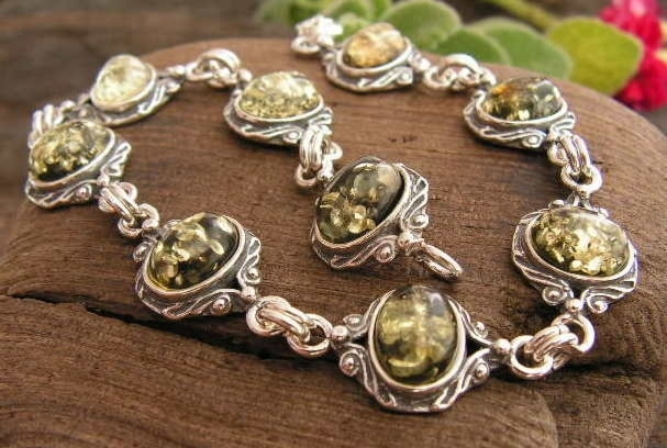 NADINA – srebrna bransoletka z bursztynem