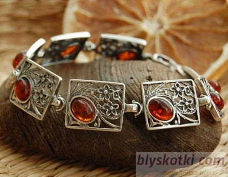 NAZZA – srebrna bransoletka z bursztynem