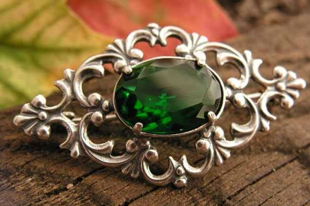 ANTONINA – srebrna broszka szmaragdy z kryształ