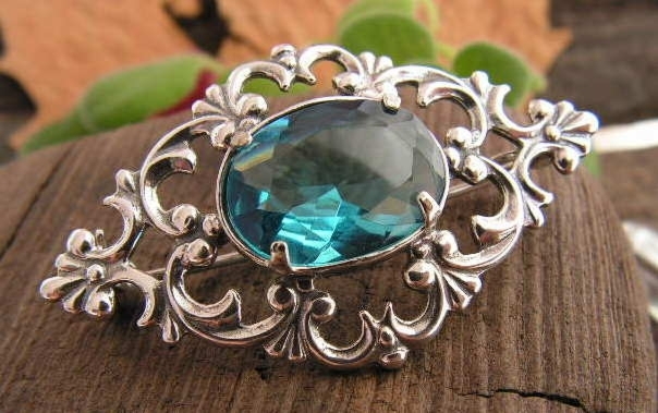 NEMI – srebrna broszka z akwamarynem
