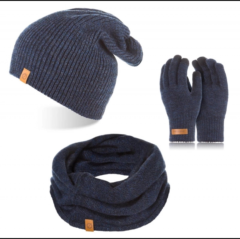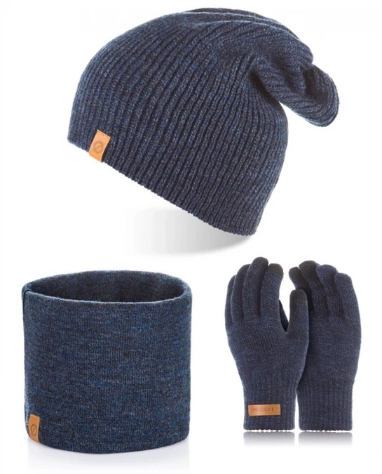 Zestaw męski Brødrene czapka komin rękawiczki 103160 granatowy