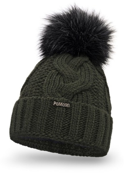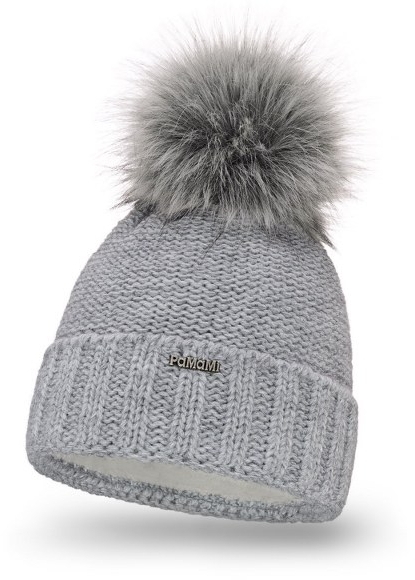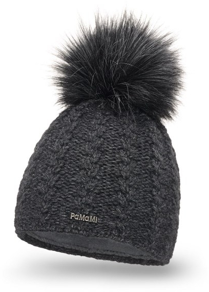 Czapka Damska z Futerkowym Pomponem PaMaMi Ciemnoszara