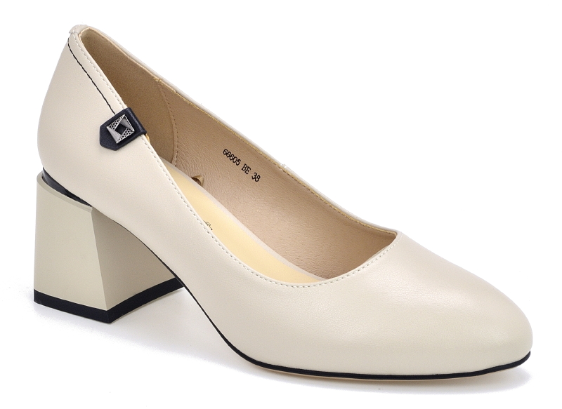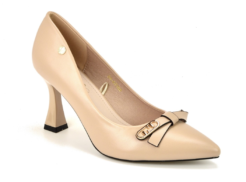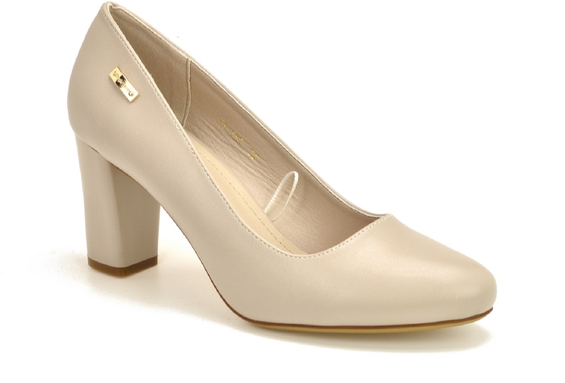 Beżowe skórzane czółenka damskie na obcasie Vinceza 91130