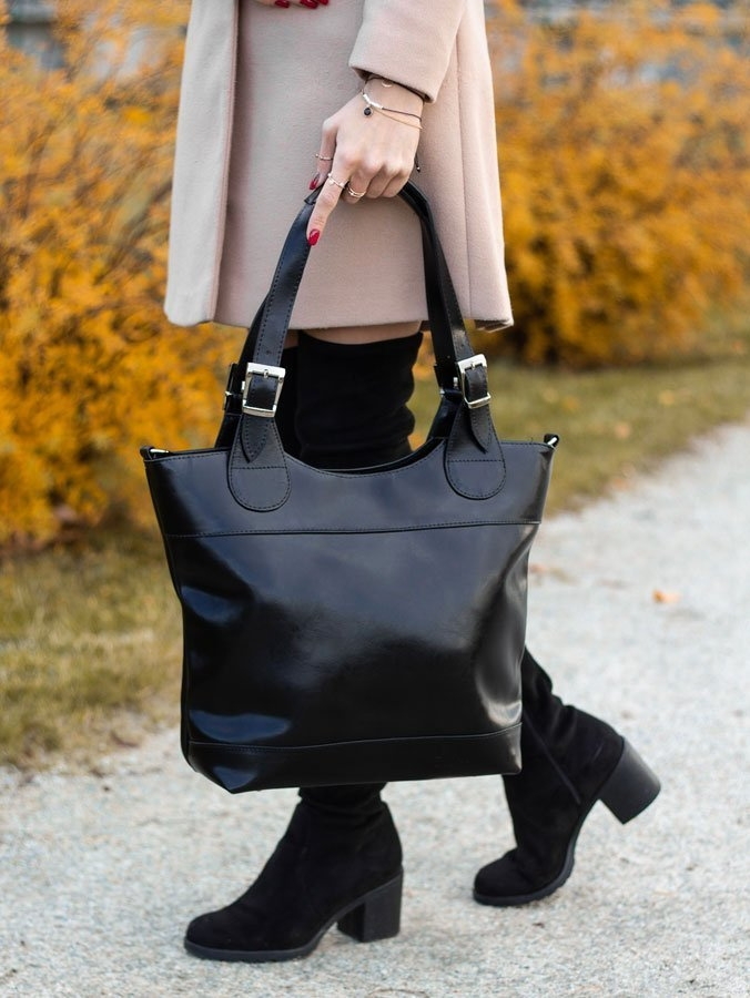 Torebka skórzana damska łódka DAN-A T221 czarna