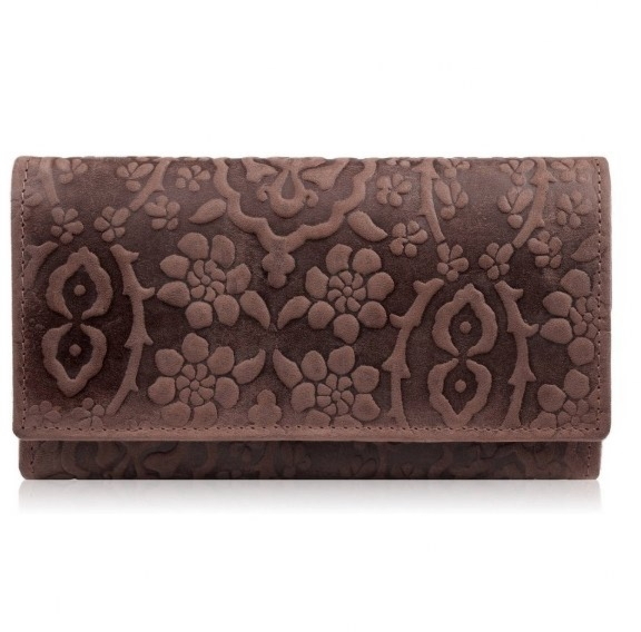 Portfel Damski Skórzany z Unikalnym Zdobieniem Paolo Peruzzi T-111-HBR Brązowy