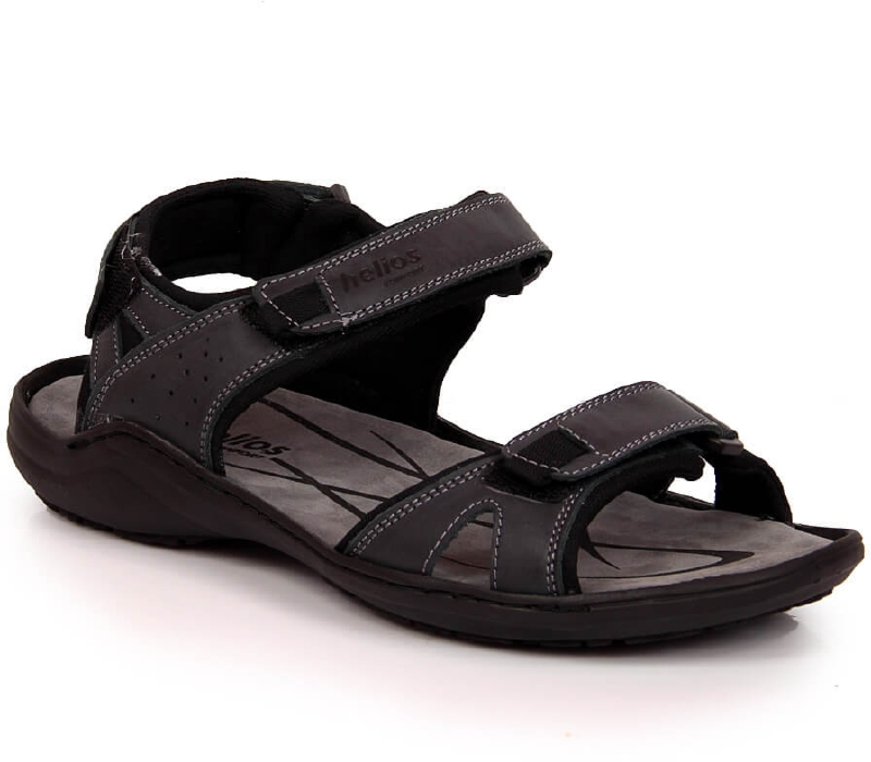 Sandały męskie skórzane na rzepy grafitowe Helios 854