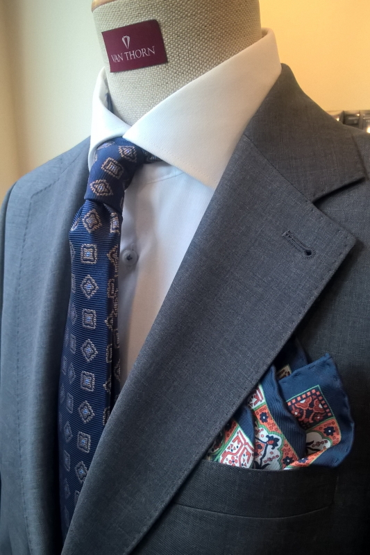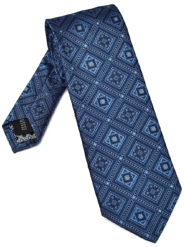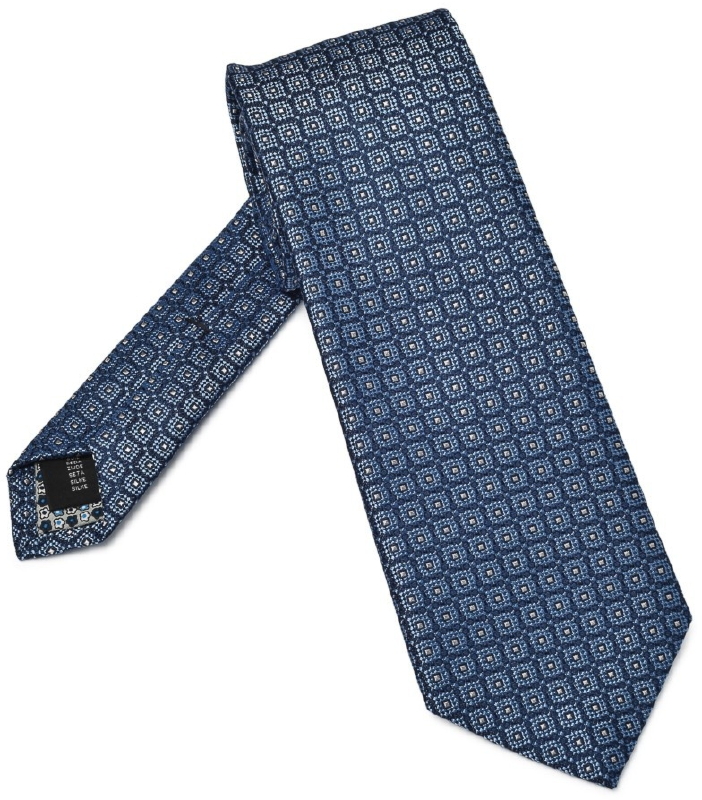 granatowy jedwabny krawat w beżowy wzór DŁUGI