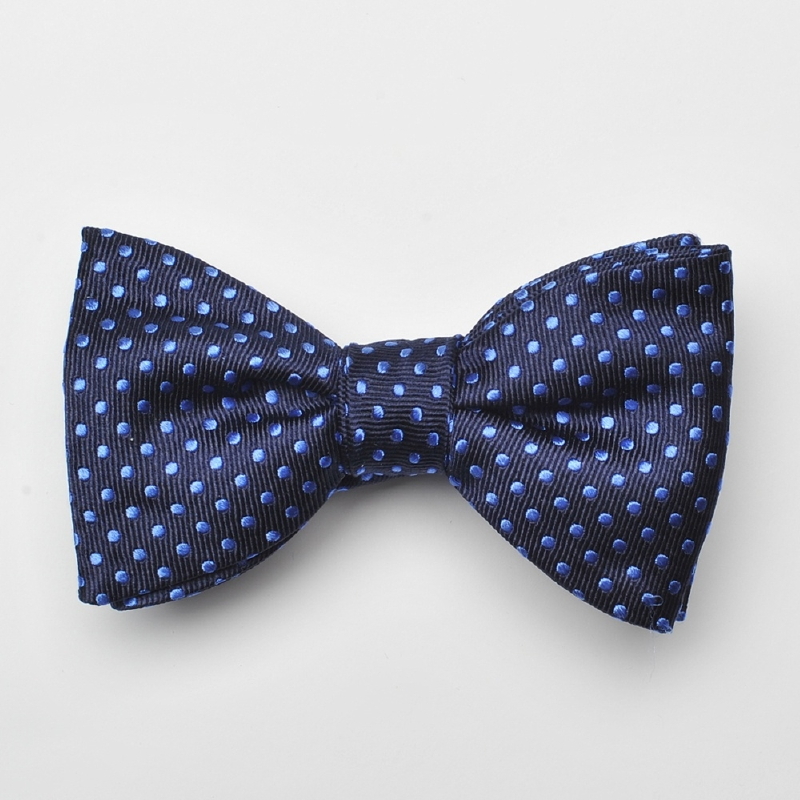 Granatowa mucha wiązana Hemley w błękitne groszki