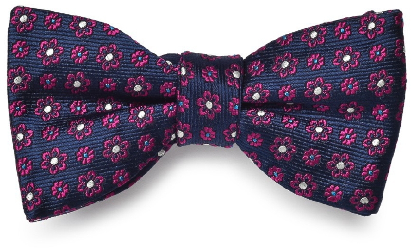 Granatowa mucha wiązana Hemley w niebieskie i beżowe kwiaty