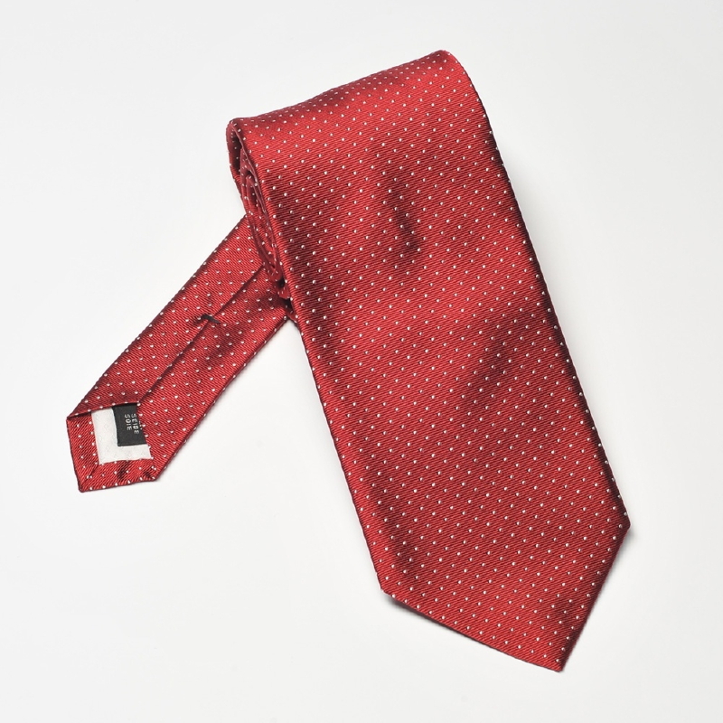 Elegancki DŁUGI czerwony krawat jedwabny Hemley w białe kropki