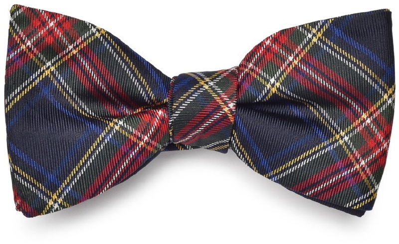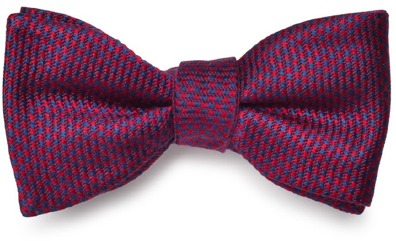 Granatowa mucha wiązana w czerwono-żółtą kratkę