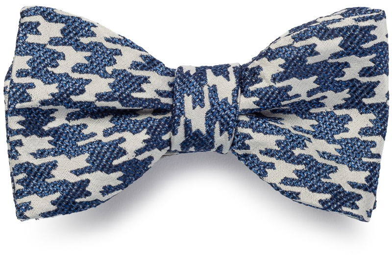 Elegancka mucha wiązana niebieska w biały wzór Hemley