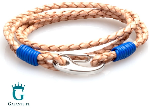 Beżowa bransoletka pleciona ze skóry naturalnej T758-2-NATBE