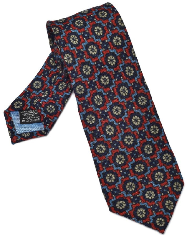 Czerwony krawat wełniany w błękitny wzór