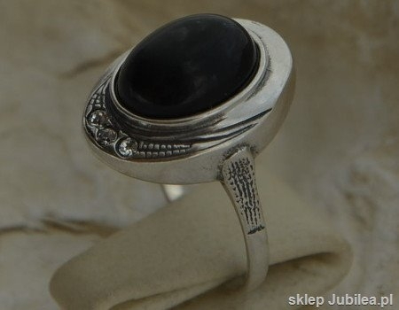 DUOMO – srebrny pierścionek onyks z kryształami